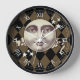 A nostalgic vintage steampunk fantasy man in the moon design with a harlequin checked background. In antique sepia tones.