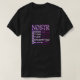 I give wanted to give this a 4 instead of a 5 because these Basic DARK T0shirts run unexpectedly SLIM or Narrow. Which is great if you do not have a potbelly, but I have a paunch. It isn't the shirt's fault that I've got a beer belly. The design and shirt itself is a quality cotton shirt. The color is more of a deep purple, but still a very pretty color. The Basic DARK T-shirts run a bit SLIMMER than the Basic Ts. The neck is a fraction narrower (or seems to be narrower) also. I'm a paunchy middle-aged woman and my neck is 12 inches (31cm) thick and the neckline fell about the same as in the photo of the man, and I had the desire to tug it a bit. So if you're a thick necked man or like loose shirts, be aware these are slimmer shirts. Once I get rid of my lockdown paunch it'll look great. The shirt washed well in cold water with no apparent bleeding. We don't have a dryer, so it hung dry. Did not shrink. Love the colors and the design. The design looks smaller on my shirt than it does on the model on-line. But still, it looks good on the shirt. The printing looks as it does on the model, just the size seems fractionally smaller. Washed garment in cold water, hung dry and design appeared unaffected.