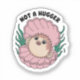 A sticker illustration of a pufferfish with the text "not a hugger" above it. The pufferfish is in a seashell and is surrounded by seaweed. The background is a light blue gradient.