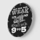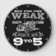 This bold wall clock highlights the demanding nature of the trucking profession. Against a black background with a white rim, it features a grey semi-truck and the strong message: "NOT FOR THE WEAK CAUSE THIS AIN'T NO 9 TO 5". It's a perfect tribute to the dedication and resilience of truck drivers who work beyond conventional hours. The design tool can also be used to add custom text if you want your name or company on this clock. You can customise the colour of the frame to any colour you desire by going into the design tool.