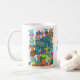 A mug with a funny cartoon about someone, in a group of clowns, letting go of something smelly. Original artwork DB Cartoons.