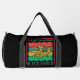 This duffle bag is a must-have for any tool enthusiast, featuring the humourous phrase "IT'S NOT HOARDING IF IT'S TOOLS." The design showcases various tools like a wrench, screwdriver, and hammer against a vibrant retro striped background. Perfect for carrying your gear or as a witty gift for the handyman or DIYer who always has the right tool for the job. Edit colour of the bag caps and body in the Design tool to your favored colours.