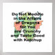 Do not meddle in the affairs of dragons, for you are crunchy and taste good with ketchup. A favourite saying among pagans and other people with a sense of humour and a love of dragons, also known as basilisk, hydra, tarragon, and wyverns. Available in many different colours. This version has a green dragon head with yellow eyes faded into the background.