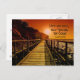 Beautiful inspirational quote custom postcard depicts the setting sun over a wooden bridge surrounded by the sea and features Bible Verse Luke 22:42. The inside greeting can be modified or deleted for a blank card._