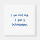 Square magnet reads "I AM NOT OLD. I AM A KINGAGER." Funny magnet for your fridge or anywhere.. Dark blue letters can be changed to any colour you wish by using the "edit design" feature. You can change the font the same way. Great for a laugh, anytime.
