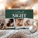 Holiday humour, Not So Silent Night, festive hunter green holiday photo card. Card features, 3 photos on polaroid style frames. Back of card is complimented with white doodle snowy dot frame on matching green background. Template text spaces for message and names.