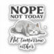 Embrace the charm of a cute feline peacefully dozing off, perfectly capturing the mood of introverts and those who appreciate the value of quiet solitude. Featuring the humourous phrase 'Not today. Not tomorrow either,' this sticker is a playful reminder that taking a break is sometimes the best plan. Ideal for cat lovers and anyone who values cosy moments and witty humour.