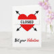 This Valentine’s Day card makes a strong statement with bold imagery and clear wording. At the center is a bright red heart pierced by four black arrows, forming a sharp “CLOSED” symbol across the heart in white and black lettering. The white background keeps the focus on the graphic, making the message easy to read at a glance. Below the heart, the phrase “Not your Valentine” appears in a mix of flowing black script and vivid red text, adding contrast and personality. The combination of red, black, and white creates a striking look that communicates independence and boundaries with humor. This card is ideal for anyone who wants to opt out of traditional romance while still marking the occasion in a clever way.❤️💌🍫. S