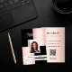 Back: Faux gold background. Templates for Your name, title, phone number, mail and website address, your own QR-code to your website or social media account.