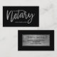 An elegant,modern, stylish notary logo business card with stylish script hand lettering style typography in faux silver on a simple customisable black background. If you need any customisation, don't hesitate in contacting me