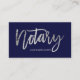 An elegant,modern, stylish notary logo business card with stylish script hand lettering style typography in faux silver foil on a simple customisable navy blue background. If you need any customisation, don't hesitate in contacting me