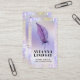Feminine purple quill pen is placed over a hologaphic and glitter background. Your name is in a bold, modern typography. Lots of text that you can personalise to describe your notary business.