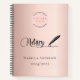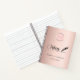 A chic rose gold, blush background, decorated with a feather pen. Personalise and add your business logo and a name and year(s). Black text: Notary