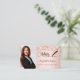 An elegant and glamourous business card on a rose gold background decorated with confetti on front and a black signature signing pen. Elegant hand lettered style script. Personalise and add Your name, text, profile photo, contact info and your own QR code to your website address.