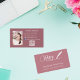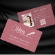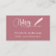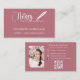 An elegant and glamourous business card on a rose gold background decorated with a white signature signing pen. Elegant hand lettered style script. Personalise and add Your name, text, profile photo, contact info and your own QR code to your website address. Facebook icon and template for your account handle.