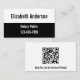 A business card makes it easy to promote your notary services. You can edit the text as desired to create a custom message. All text can be edited or deleted. The business card's top half is white with black text. The bottom part is black with white text. You need to enter your website URL for the QR code to work correctly.