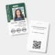 Professional Notary Public ID badge with a profile photo, and three accreditation symbols or a logo. This editable template can be personalised with your name, credentials, and commission, along with certification marks or your company logo for branding. Additional information and a QR code are included on the back. This classic design blends both traditional and contemporary features, creating an elegant yet friendly appearance. It offers fully customisable text to fit your business brand. Perfect for a Notary Public, Loan Signing Agent, Certified Notary Trust Delivery Agent (CNTDA), Mobile Notary, Apostille or other legal professional. Printed colours: very dark green, white and gold colour. Shop the online collection for more popular product ideas and supplies designed for notaries!