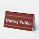 This dark red tabletop sign has white display text that you can edit to show a custom message such as your professional title. (Shown: Notary Public) The faux gold lines that are above and below the text are not made of foil.