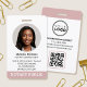 Make a professional impression with this stylish and modern ID badge. A double-sided template displaying your identification photo inside a circular frame, and personalised with your name, business details, logo, and a scannable QR code. Customise the text to suit your business. Perfect for a Notary Public, Loan Signing Agent, Certified Notary Trust Delivery Agent, CNTDA, Mobile Notary, Apostille, legal professional or other business employee. Printed design colours: dusty pink, black and white. Shop the online collection for more popular product ideas and supplies, designed for notaries!