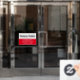 This window cling is bright red, black, and white. You can edit the text to meet your needs. You may want to show a custom message such as your service, company name, and hours. The top half is white with one line of large, black text. The bottom half is bright red with three lines of white text.