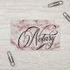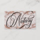 Modern rose gold marble notary business card features elegant typography script ''Notary'' in trendy black handwritten lettering on a rose gold marble background. Personalise further with your details on the back.