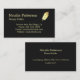 This modern and stylish custom business card features a gold feather logo on a black background, perfect for notaries. Customizable text and logo.