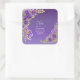 Note + Bride Groom Names Purple Mauve Flowers Square Sticker