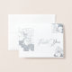This small size thank you note card is shown in a basic white card stock paper with a lovely silver foil floral print design.