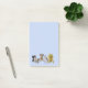 Toy animals are grouped together at bottom of the page. 3 dogs, an owl and a lion on a light blue background.