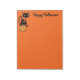 This note pad is shown in a cute festive Halloween black cat and pumpkin print design.