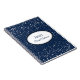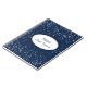 Petite stars in silver-grey grace the cover of this custom name bride's notebook. Shown in deep sapphire blue with a white oval and coordinating border colours of black and powder blue slate along with fun and fanciful text of your personalised name in centre and the phrase "Bride Notebook". Customise this item.