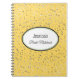 Petite stars in silver-grey grace the cover of this custom name bride's notebook. Shown in a bright Sunflower Yellow with a white oval and coordinating border colours of Black and Celery Green along with fun and fanciful text of your personalised name in centre and the phrase "Bride Notebook" in Black. Customise this item.