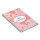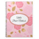 Notebook shown with a graphic of pretty pink roses on a pink background with the phrase " Bride Notebook" inside an oval shape with coordinating borders. Customise this item and change the name to yours or take off the name.