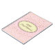 Notebook shown with a graphic of petite stars in golden on a blush pink background with the phrase " Bride's Notebook" inside an oval shape with coordinating borders of mauve and taupe. Customise this item and change the name to yours or take off the name, change the star colours in filter, background colour or buy as is. Golden, Ivory, Bordeaux, mauve and blush pink.