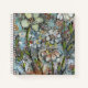 Notebook featuring mixed media floral art. Blues, greens with a touch of orange and red highlights.