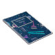 Colourful notebook features an assortment of hair styling tools on the cover; background colour is a dark blue and hair tools are featured in shades of medium to light blue, teal, violet and light grey. Cute notebook for any hair stylist, or hair enthusiast. Handy notebook for all types of notes, lists, daily activities. These composition notebooks can brighten up day-to-day activities, or even daily journalling. This design makes a great gift for any hair stylist, cosmetologist, student of cosmetology, or anyone who has an interest in hair styling.