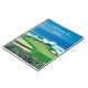 Notebook is shown with a photo print of a beautiful golf course at ocean side.