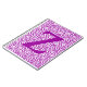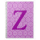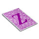 Personalise with a large solid coloured letter in front of a pattern of concentric hexagons replicated across the cover. Default colour for letter and background fonts is purple.