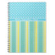 A chic Spiral Notebook to personalise, with a pattern of Golden Daffodils, alternating with Daffodil Yellow and White Strips, teamed with a coordinating Sky Blue and White Polka Dot pattern. Part of the Posh & Painterly 'Spsring Sunshine' collection.
