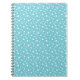 Notebook shown with a cute aqua and white polka dots print.