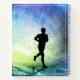 This notebook is shown in a regular shape with college rule pages in a art print of a runner.