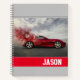 This notebook is shown in a regular shape with college rule pages with a sports car photo print.