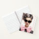 Make a bold statement with this personalised notebook, featuring a fashion-forward illustration on the front cover. The model, with sleek platinum hair, dramatic dark sunglasses, and pouty lips, exudes a sense of high-fashion sophistication. A striking pink bow at her neck adds a playful touch, while the expressive watercolor brushstrokes give the design a sense of movement and energy. The back cover is a sleek dark grey, creating a stylish contrast for your personalised text in crisp white font. With plenty of space for longer first names, this notebook is the perfect gift for fashion enthusiasts, beauty professionals, or anyone who loves custom, chic accessories.