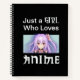 Are you Just A Girl Who Loves Anime? This delightful notebook includes lined or graph paper pages for you to keep track of your year.. You will love this notebook featuring a beautiful purple haired anime girl! And it will make a perfect gift.