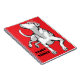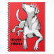 It's a notebook or journal with the image of a white dog with a red background with inspiring image in English