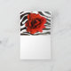 RED HEART ON THE FRONT, RED ROSE ON ZEBRA BACKGROUND INSIDE, MORE HEARTS ON THE BACK.