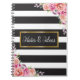 The Notes & Ideas Spiral Bound Notebook has a black and white striped background with a beautiful floral design in two corners. Such a pretty feminine notebook would make a great gift idea teenage girls and women!