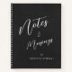 Minimalist black background, with modern script typography "Notes and Musings" to inspire your creative ideas and thoughts, personalised with your name on the front and your monogram with name on the back. Add your own information by following the "Personalise this template" link.
