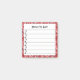 This small square 3x3 sticky notepad can be personalised with a name or message. It says "Notes to Self", and is music themed with musical notes on the lines. It can make a nice stocking stuffer for a musician or music lover. There is a red and pink floral pattern border.