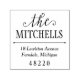 Elegant personalised address stamp design features 'the' in a flourished script with custom text for the household / family surname and return address information that can be fully personalised. Includes a simple decorative divider line.